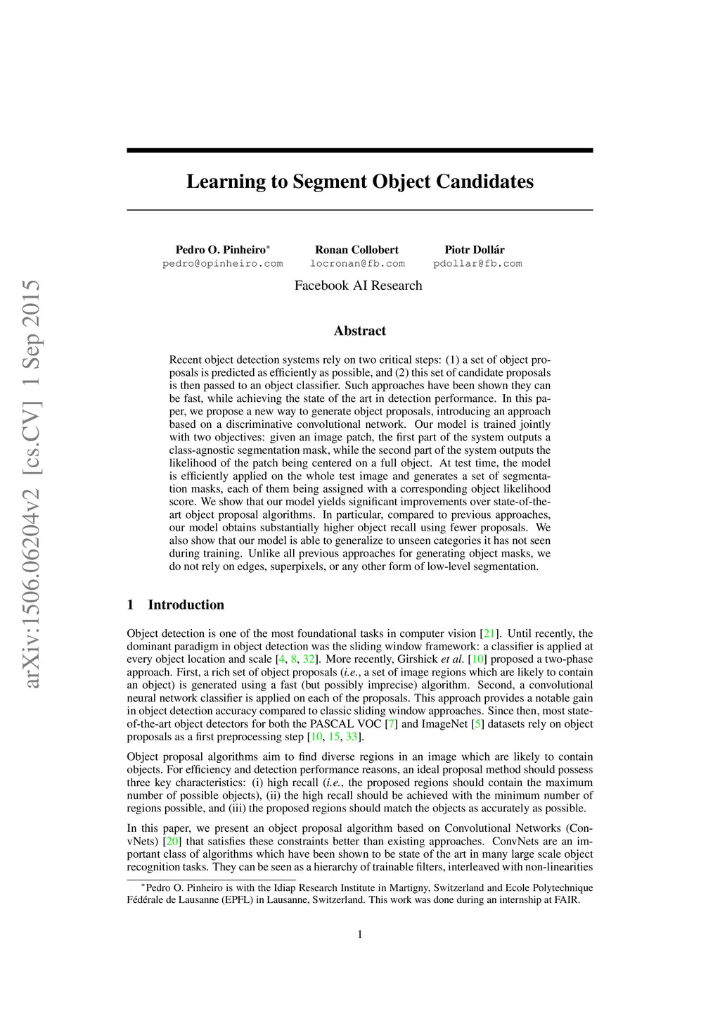 Learning to Segment Object Candidates