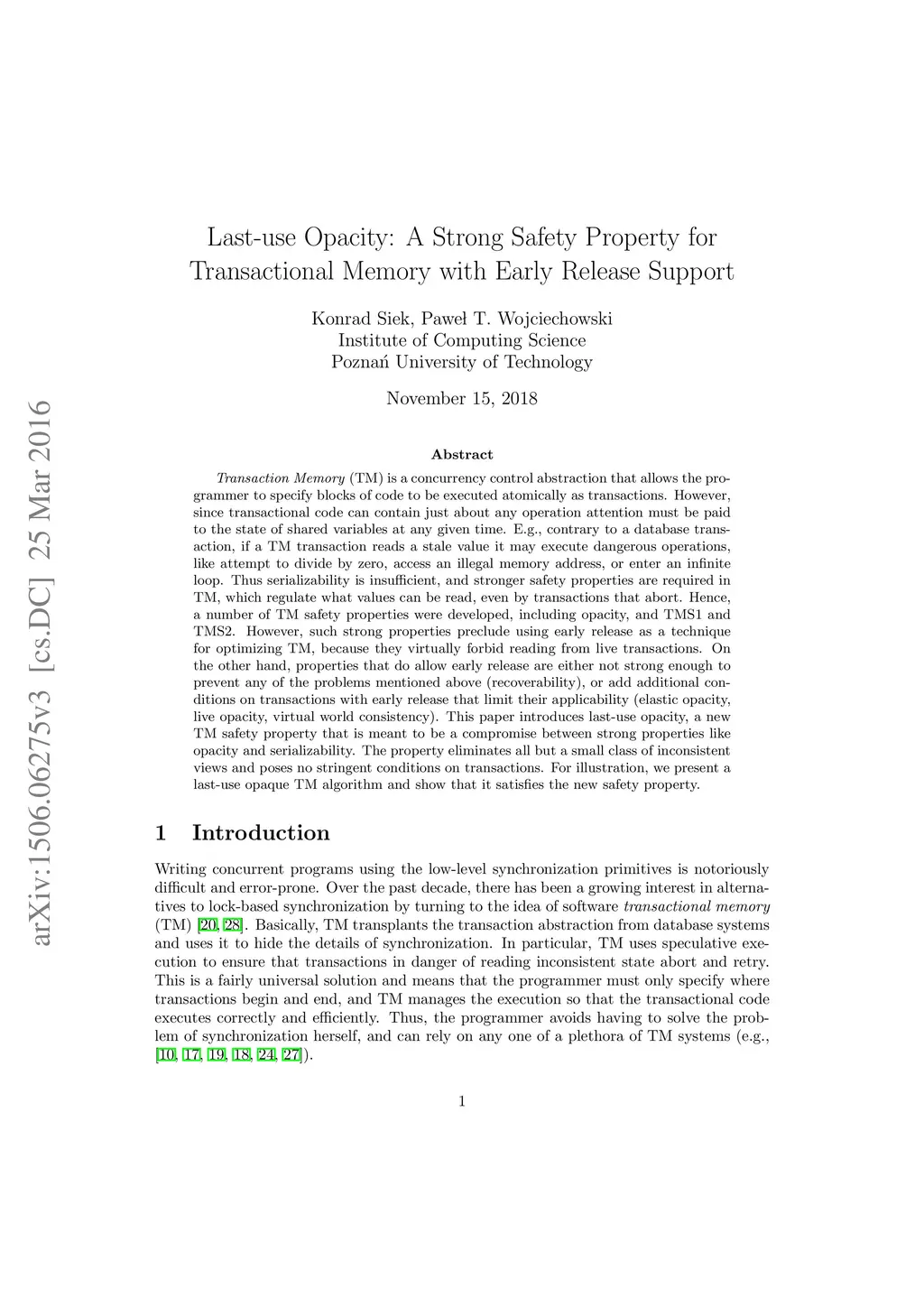 Last-use Opacity: A Strong Safety Property for Transactional Memory with