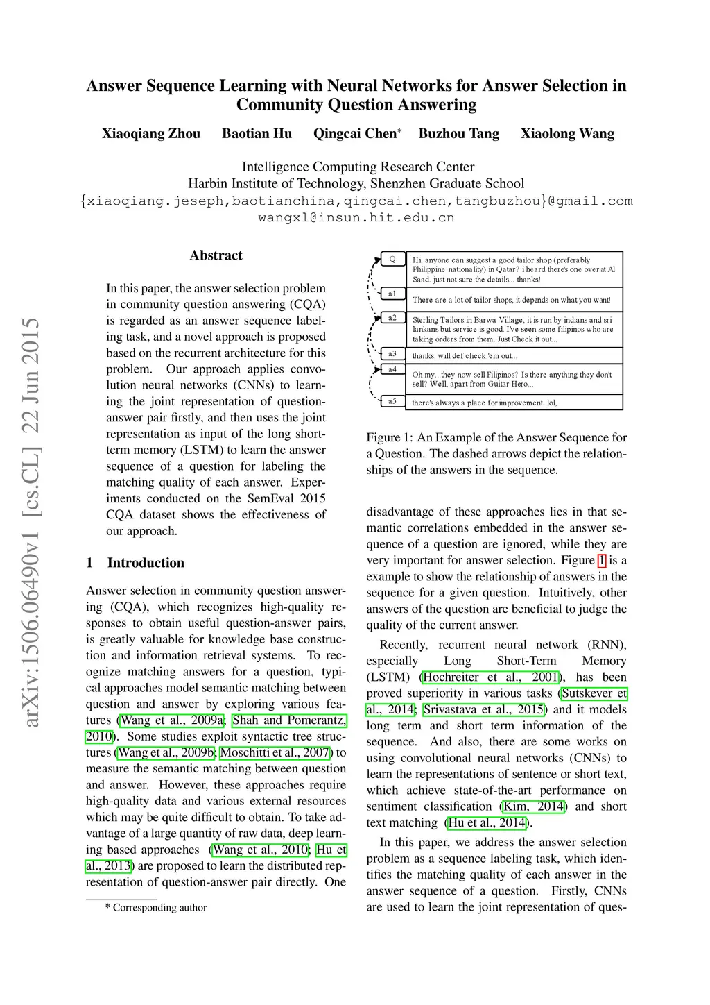 Answer Sequence Learning with Neural Networks for Answer Selection in
