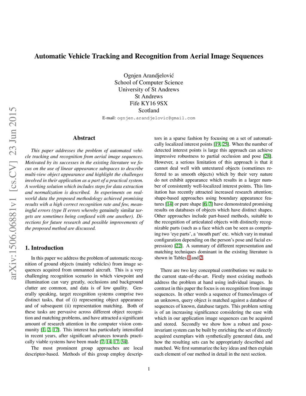 This paper addresses the problem of automated vehicle tracking and recognition from aerial image sequences. Motivated by its successes in the existing literature focus on the use of linear appearance subspaces to describe multi-view object appearance and highlight the challenges involved in their application as a part of a practical system. A working solution which includes steps for data extraction and normalization is described. In experiments on real-world data the proposed methodology achieved promising results with a high correct recognition rate and few, meaningful errors (type II errors whereby genuinely similar targets are sometimes being confused with one another). Directions for future research and possible improvements of the proposed method are discussed.