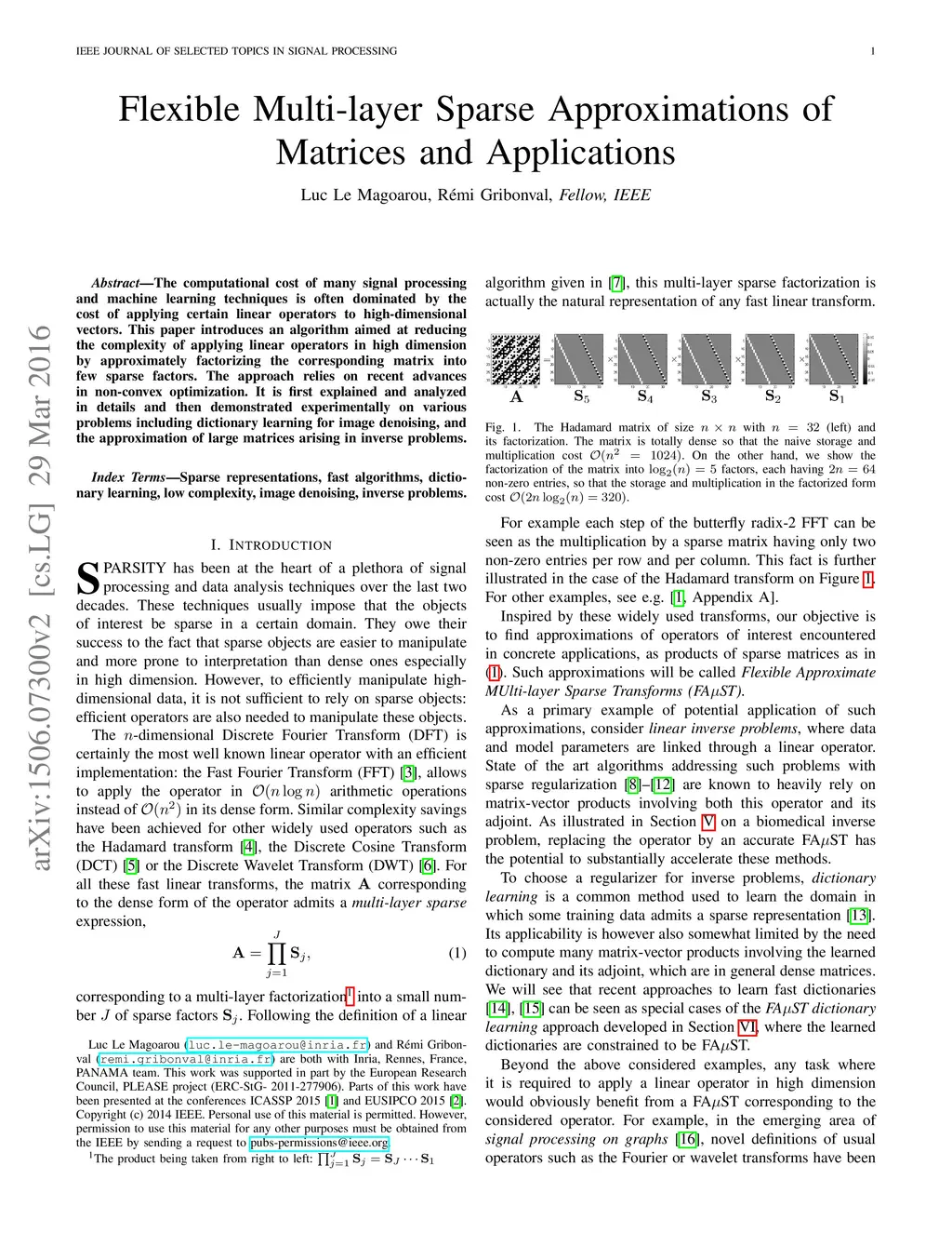 Flexible Multi-layer Sparse Approximations of Matrices and Applications