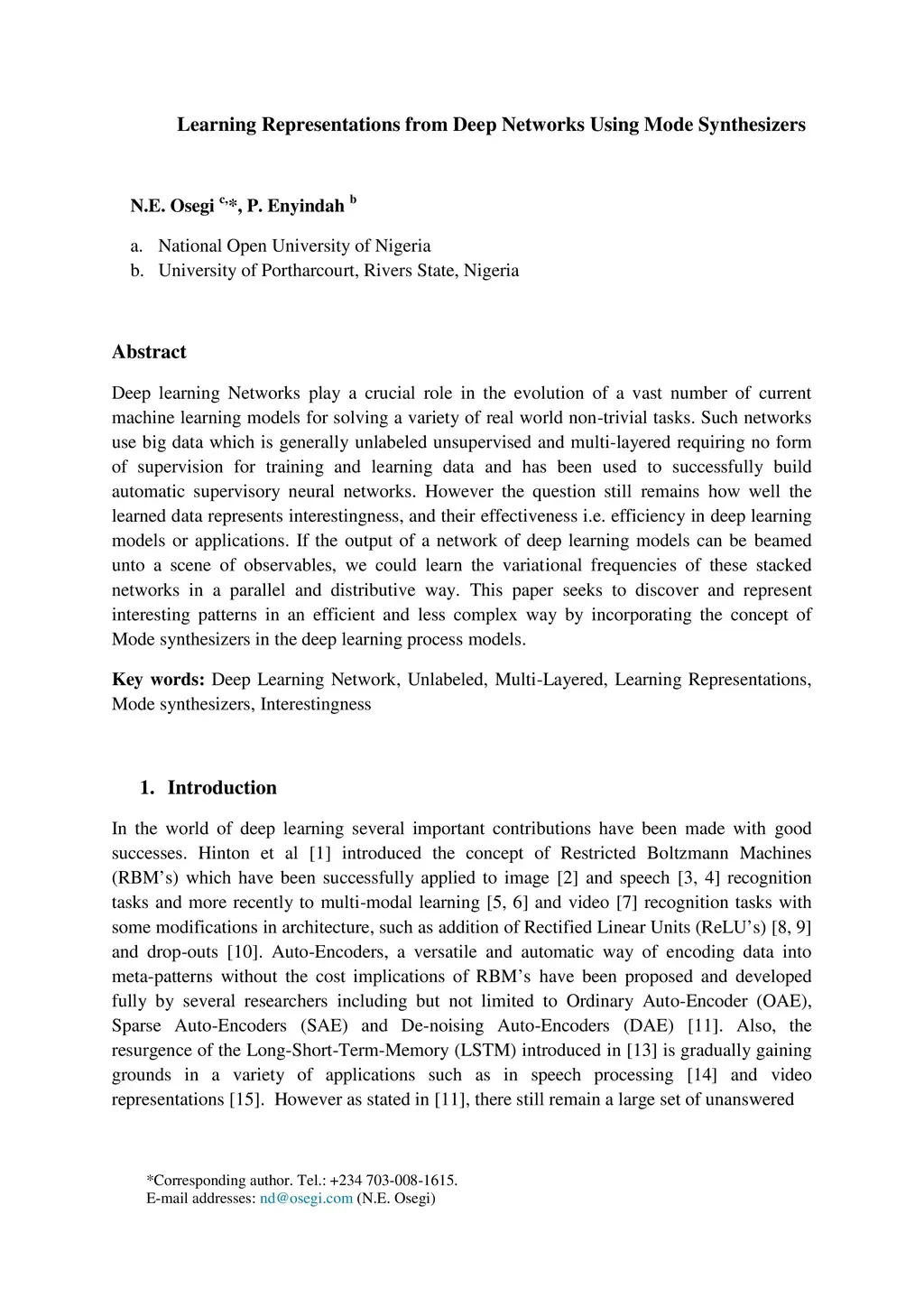 Deep learning Networks play a crucial role in the evolution of a vast number of current machine learning models for solving a variety of real world non-trivial tasks. Such networks use big data which is generally unlabeled unsupervised and multi-layered requiring no form of supervision for training and learning data and has been used to successfully build automatic supervisory neural networks. However the question still remains how well the learned data represents interestingness, and their effectiveness i.e. efficiency in deep learning models or applications. If the output of a network of deep learning models can be beamed unto a scene of observables, we could learn the variational frequencies of these stacked networks in a parallel and distributive way.This paper seeks to discover and represent interesting patterns in an efficient and less complex way by incorporating the concept of Mode synthesizers in the deep learning process models