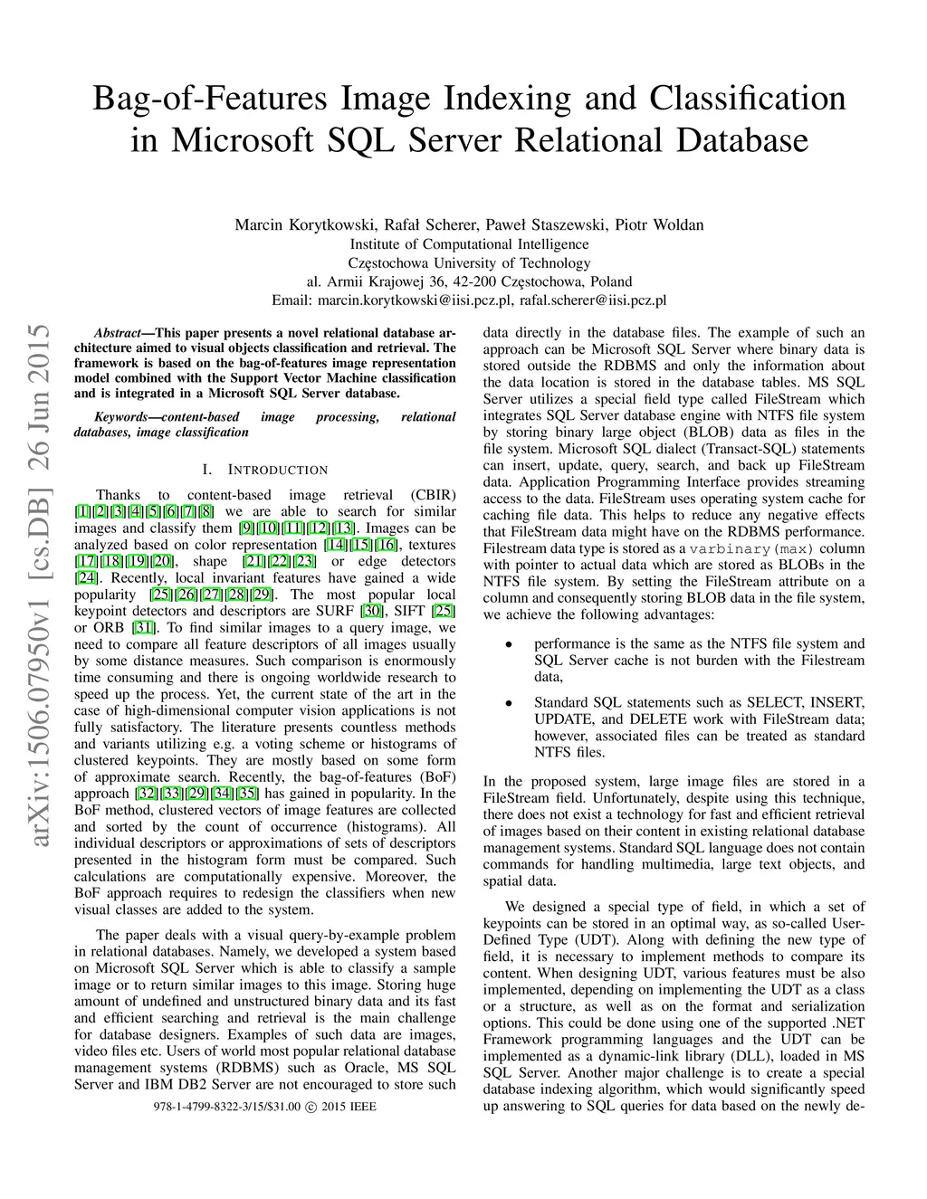 Bag-of-Features Image Indexing and Classification in Microsoft SQL