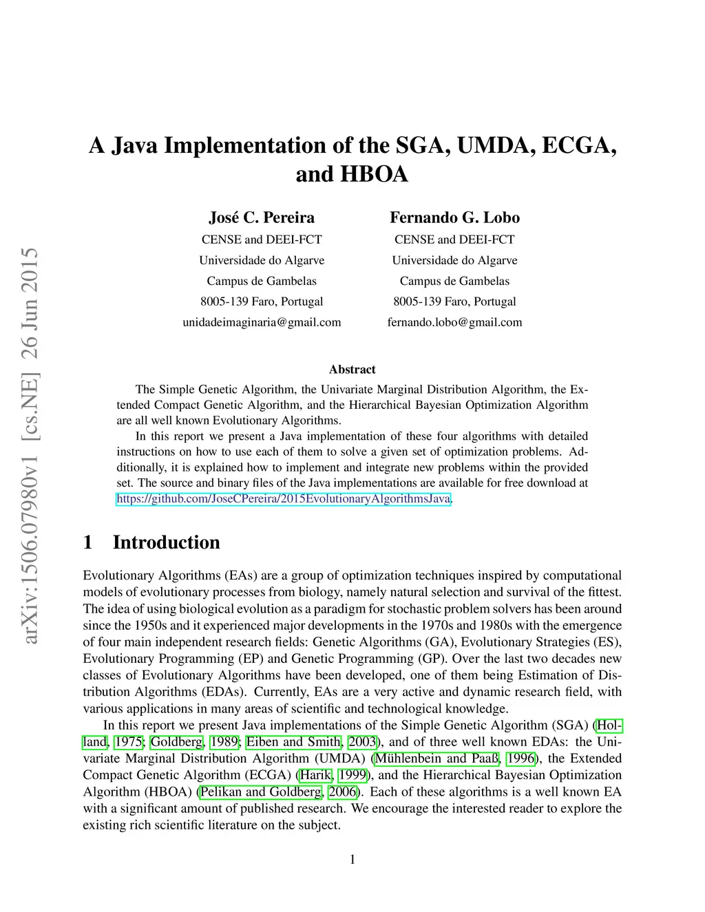 A Java Implementation of the SGA, UMDA, ECGA, and HBOA