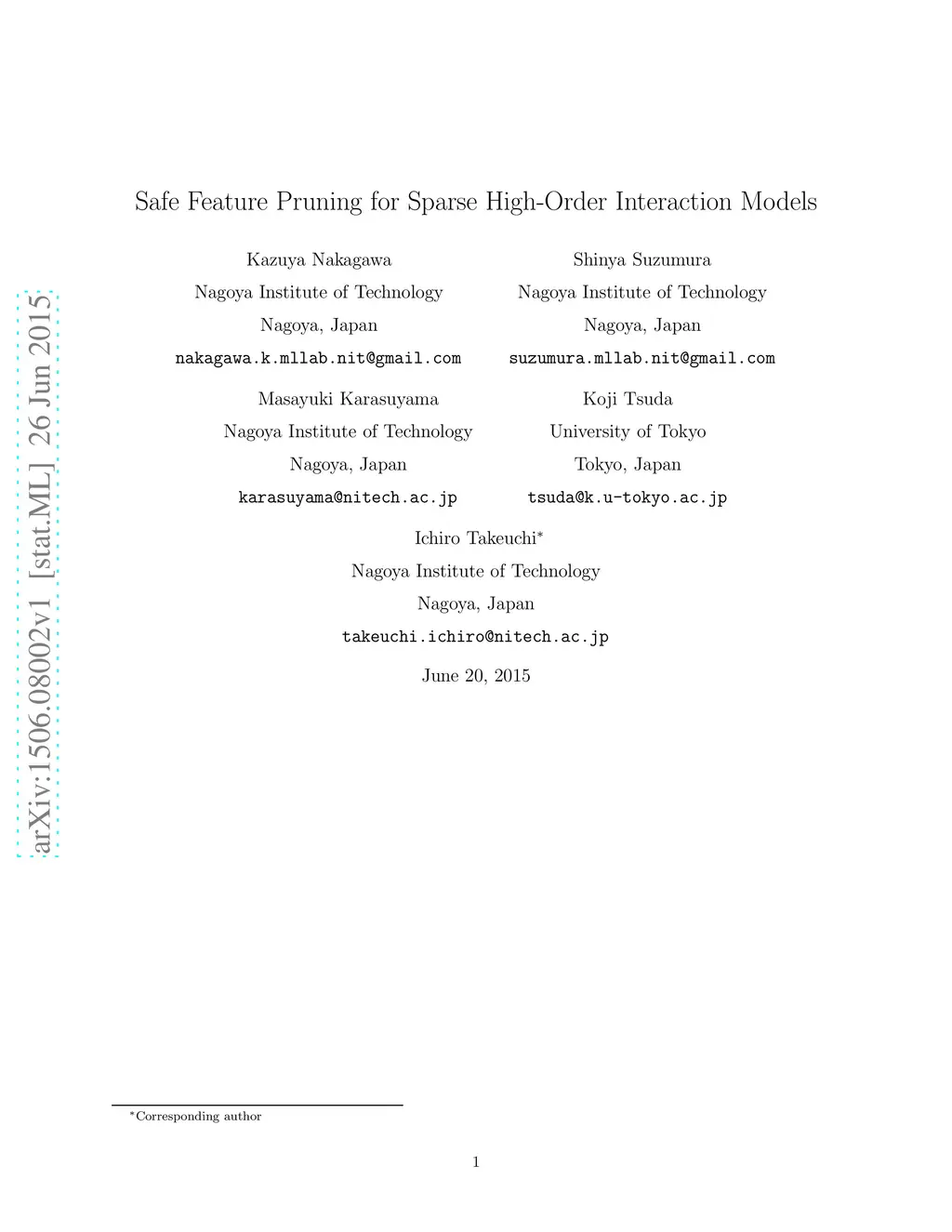 Safe Feature Pruning for Sparse High-Order Interaction Models