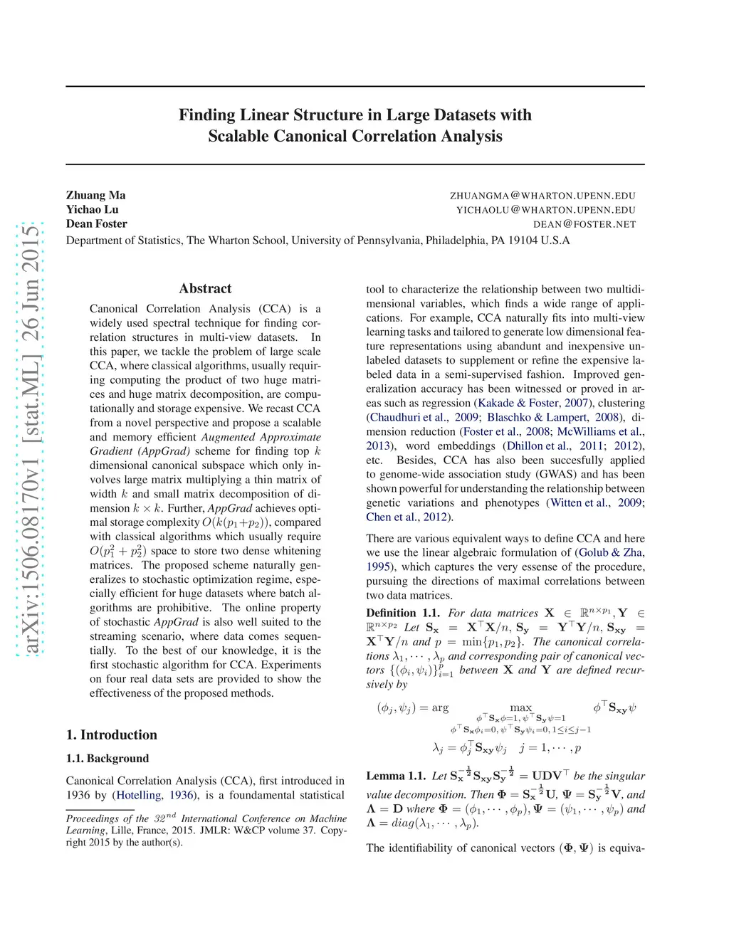 Finding Linear Structure in Large Datasets with Scalable Canonical