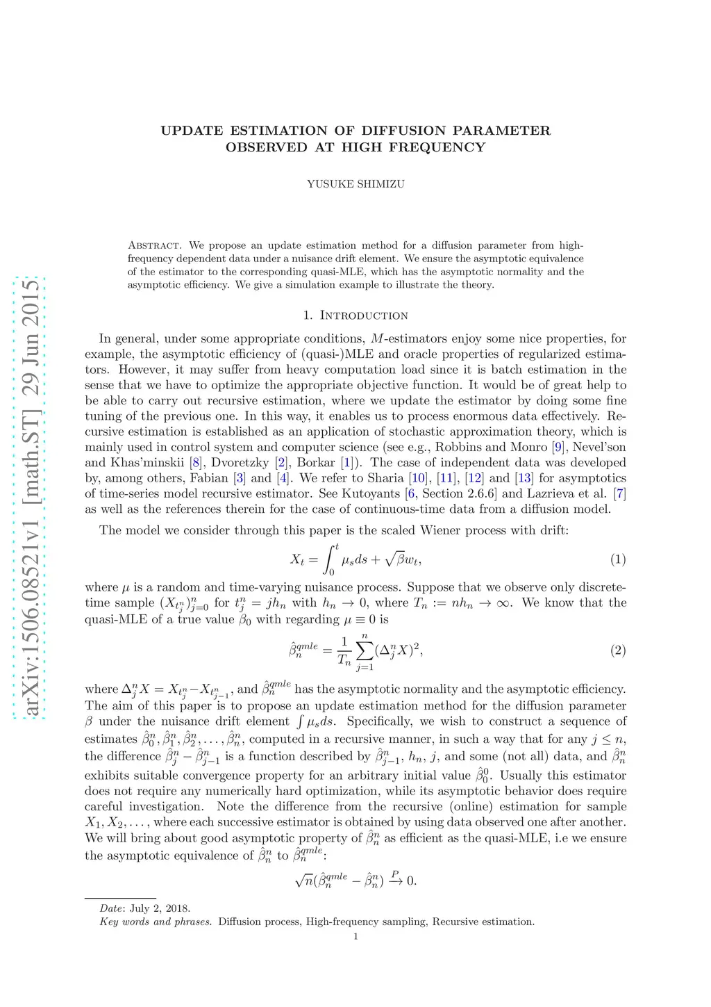 We propose an update estimation method for a diffusion parameter from high-frequency dependent data under a nuisance drift element. We ensure the asymptotic equivalence of the estimator to the corresponding quasi-MLE, which has the asymptotic normality and the asymptotic efficiency. We give a simulation example to illustrate the theory.