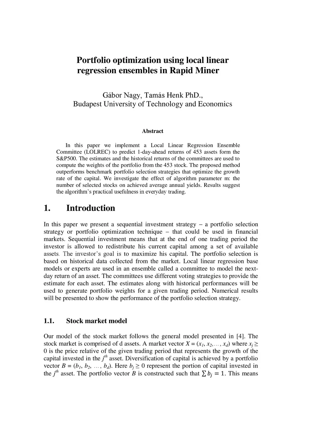 In this paper we implement a Local Linear Regression Ensemble Committee (LOLREC) to predict 1-day-ahead returns of 453 assets form the S&P500. The estimates and the historical returns of the committees are used to compute the weights of the portfolio from the 453 stock. The proposed method outperforms benchmark portfolio selection strategies that optimize the growth rate of the capital. We investigate the effect of algorithm parameter m: the number of selected stocks on achieved average annual yields. Results suggest the algorithm's practical usefulness in everyday trading.