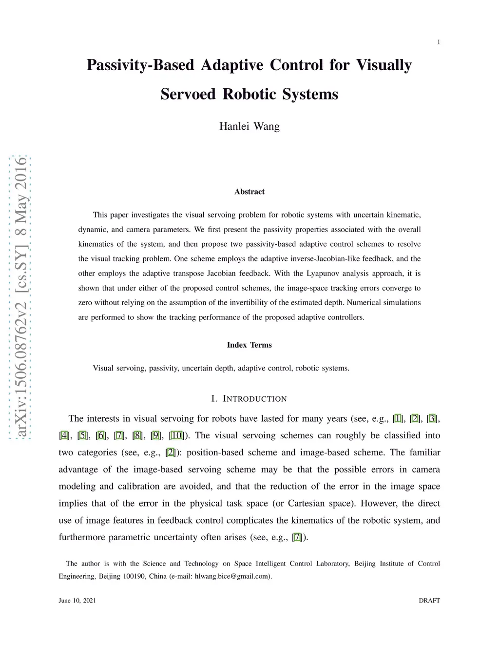 Passivity-Based Adaptive Control for Visually Servoed Robotic Systems
