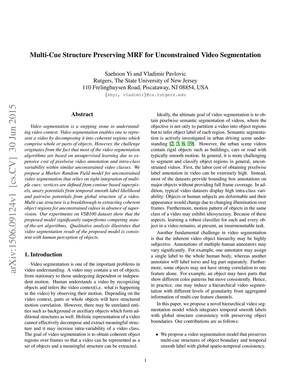Multi-Cue Structure Preserving MRF for Unconstrained Video Segmentation