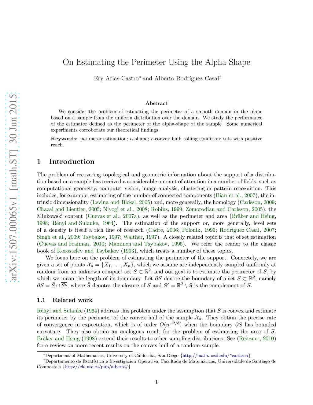 We consider the problem of estimating the perimeter of a smooth domain in the plane based on a sample from the uniform distribution over the domain. We study the performance of the estimator defined as the perimeter of the alpha-shape of the sample. Some numerical experiments corroborate our theoretical findings.