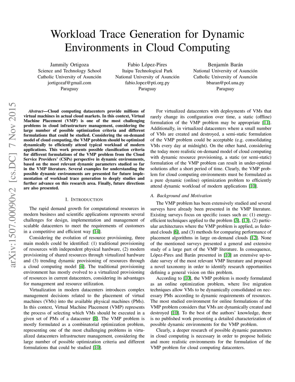 Workload Trace Generation for Dynamic Environments in Cloud Computing