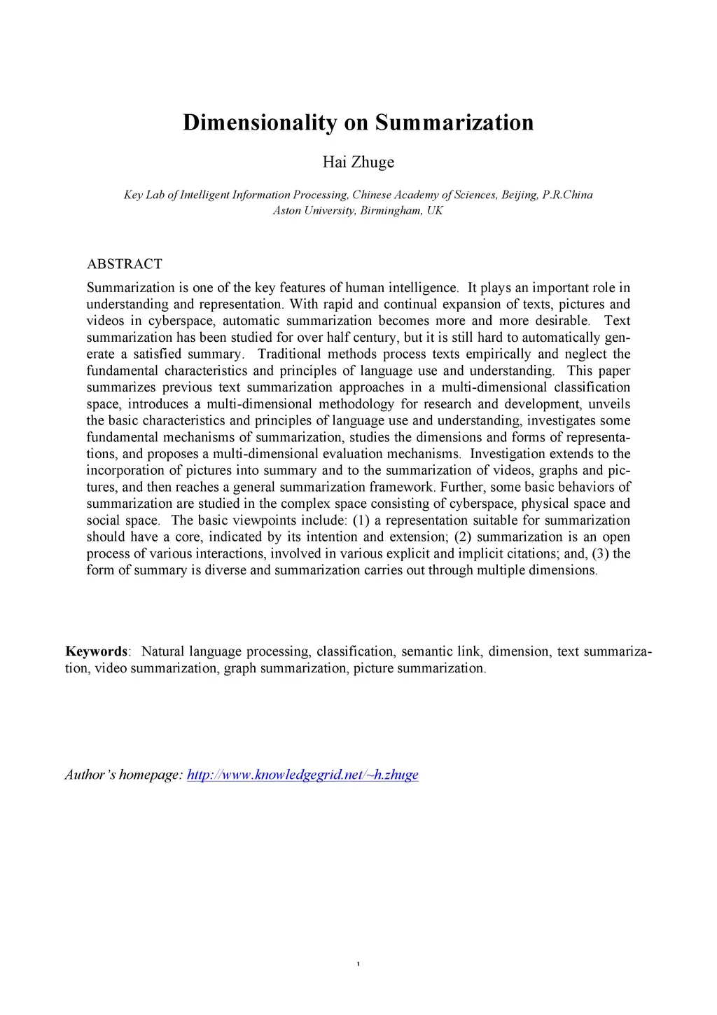 Dimensionality on Summarization