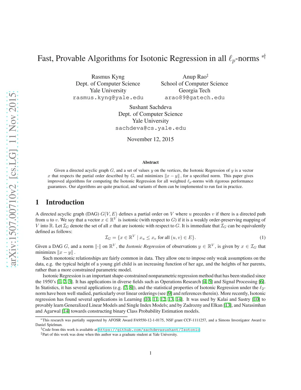 Given a directed acyclic graph and a set of values on the vertices, the Isotonic Regression of is a vector that respects the partial order described by and minimizes for a specified norm. This paper gives improved algorithms for computing the Isotonic Regression for all weighted -norms with rigorous performance guarantees. Our algorithms are quite practical, and their variants can be implemented to run fast in practice.