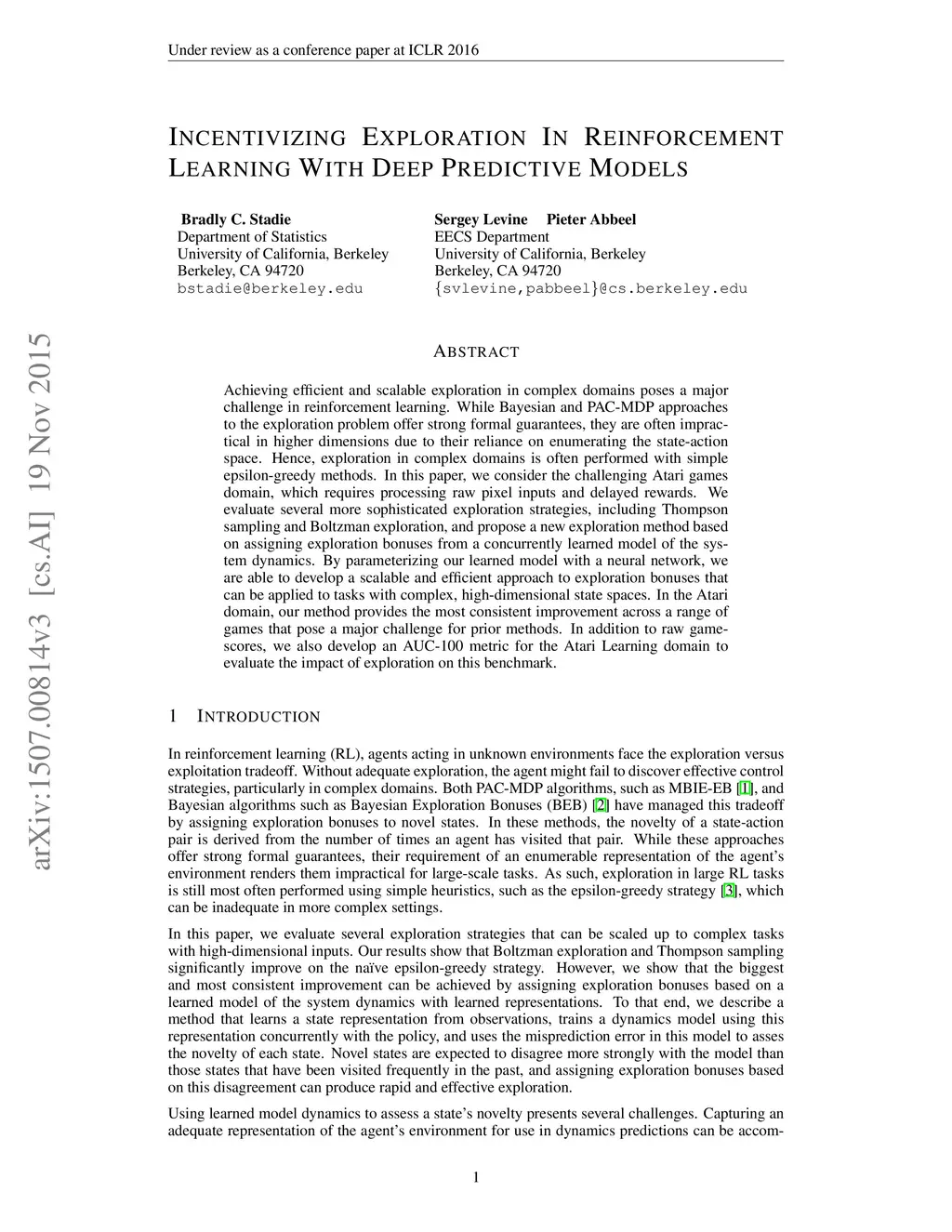 Incentivizing Exploration In Reinforcement Learning With Deep Predictive