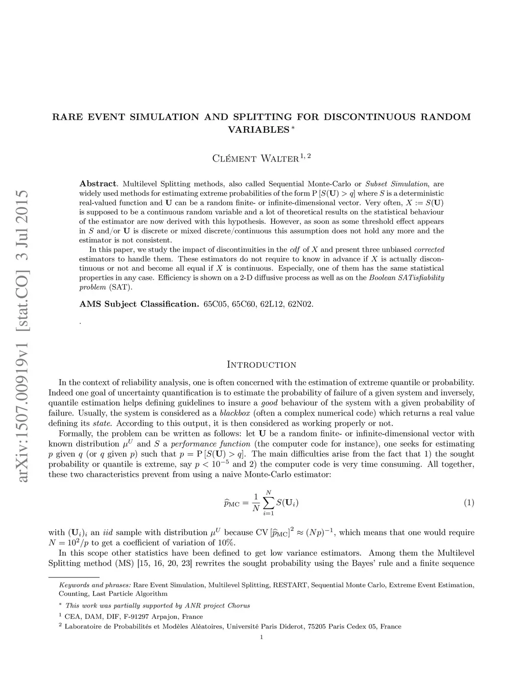 Rare Event Simulation and Splitting for Discontinuous Random Variables