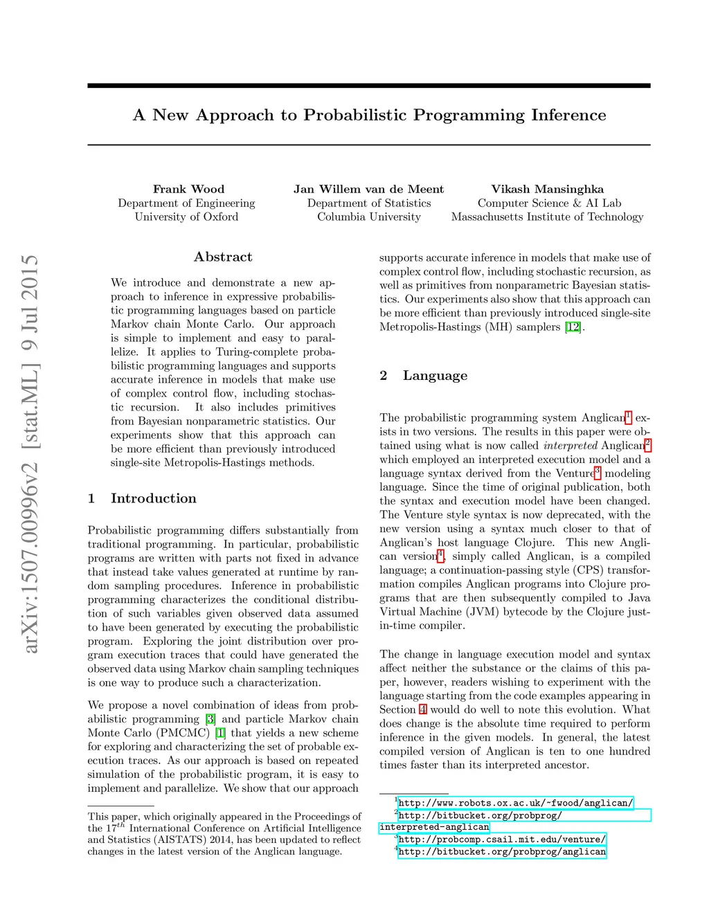 We introduce and demonstrate a new approach to inference in expressive probabilistic programming languages based on particle Markov chain Monte Carlo. Our approach is simple to implement and easy to parallelize. It applies to Turing-complete probabilistic programming languages and supports accurate inference in models that make use of complex control flow, including stochastic recursion. It also includes primitives from Bayesian nonparametric statistics. Our experiments show that this approach can be more efficient than previously introduced single-site Metropolis-Hastings methods.