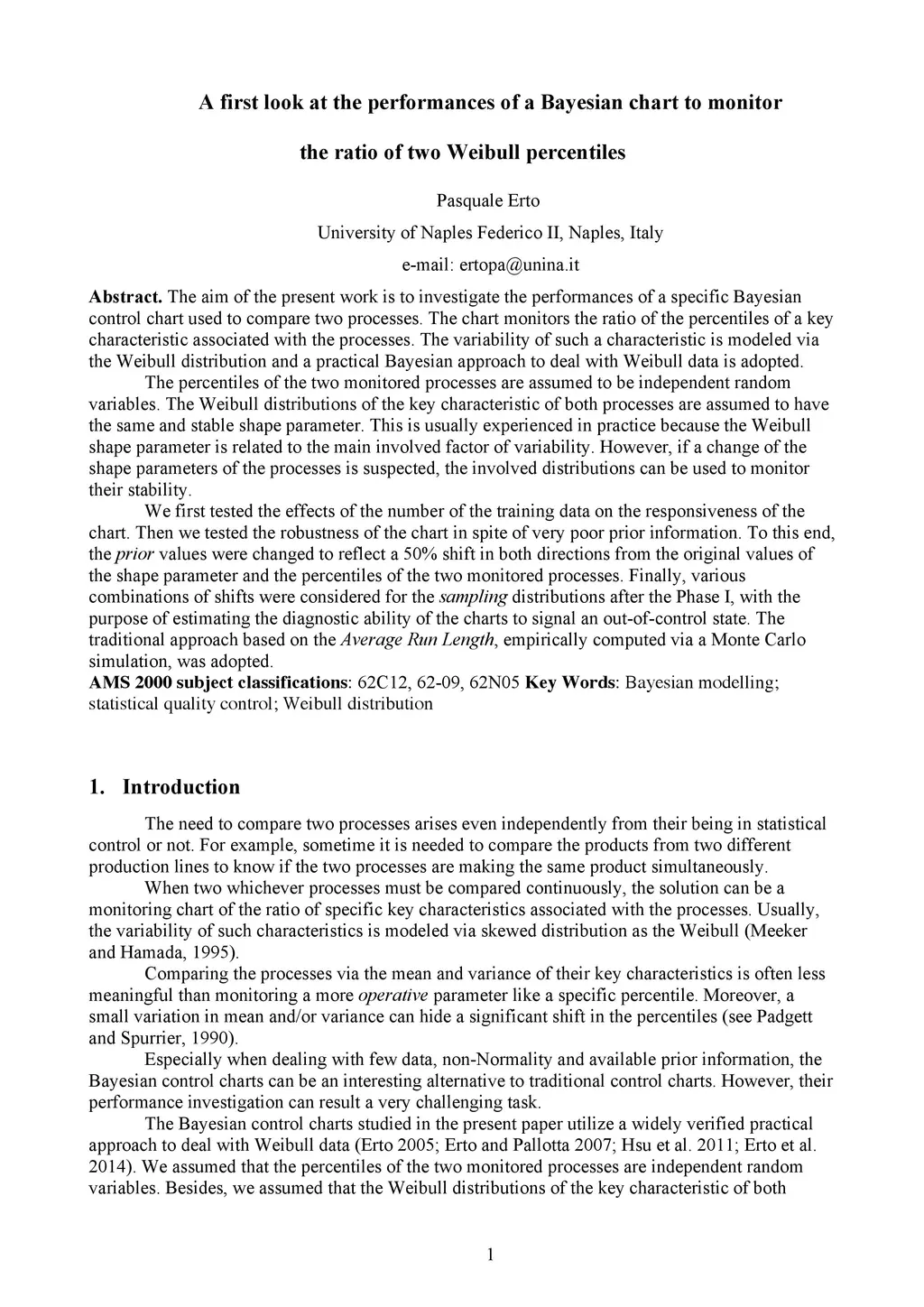 The aim of the present work is to investigate the performances of a specific Bayesian control chart used to compare two processes. The chart monitors the ratio of the percentiles of a key characteristic associated with the processes. The variability of such a characteristic is modeled via the Weibull distribution and a practical Bayesian approach to deal with Weibull data is adopted. The percentiles of the two monitored processes are assumed to be independent random variables. The Weibull distributions of the key characteristic of both processes are assumed to have the same and stable shape parameter. This is usually experienced in practice because the Weibull shape parameter is related to the main involved factor of variability. However, if a change of the shape parameters of the processes is suspected, the involved distributions can be used to monitor their stability. We first tested the effects of the number of the training data on the responsiveness of the chart. Then we tested the robustness of the chart in spite of very poor prior information. To this end, the prior values were changed to reflect a 50% shift in both directions from the original values of the shape parameter and the percentiles of the two monitored processes. Finally, various combinations of shifts were considered for the sampling distributions after the Phase I, with the purpose of estimating the diagnostic ability of the charts to signal an out-of-control state. The traditional approach based on the Average Run Length, empirically computed via a Monte Carlo simulation, was adopted.