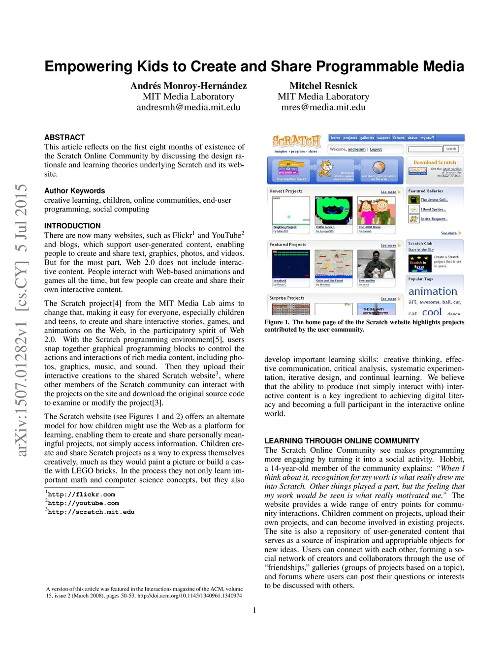 This article reflects on the first eight months of existence of the Scratch Online Community by discussing the design rationale and learning theories underlying Scratch and its website.
