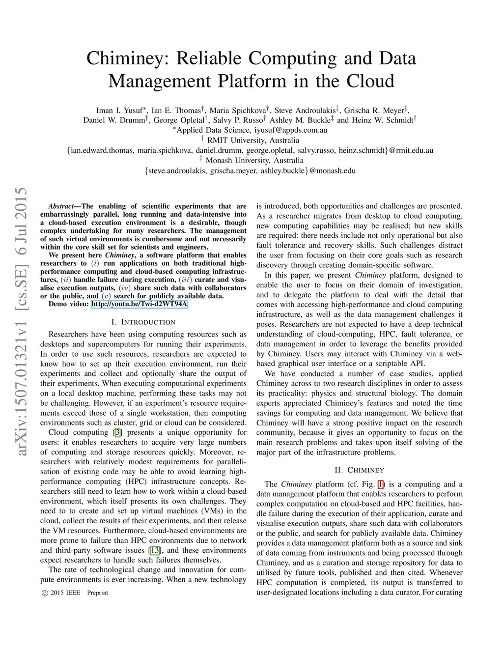 Chiminey: Reliable Computing and Data Management Platform in the Cloud