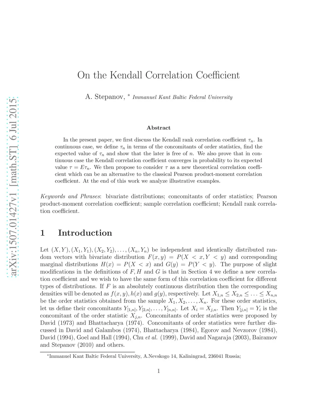 On the Kendall Correlation Coefficient
