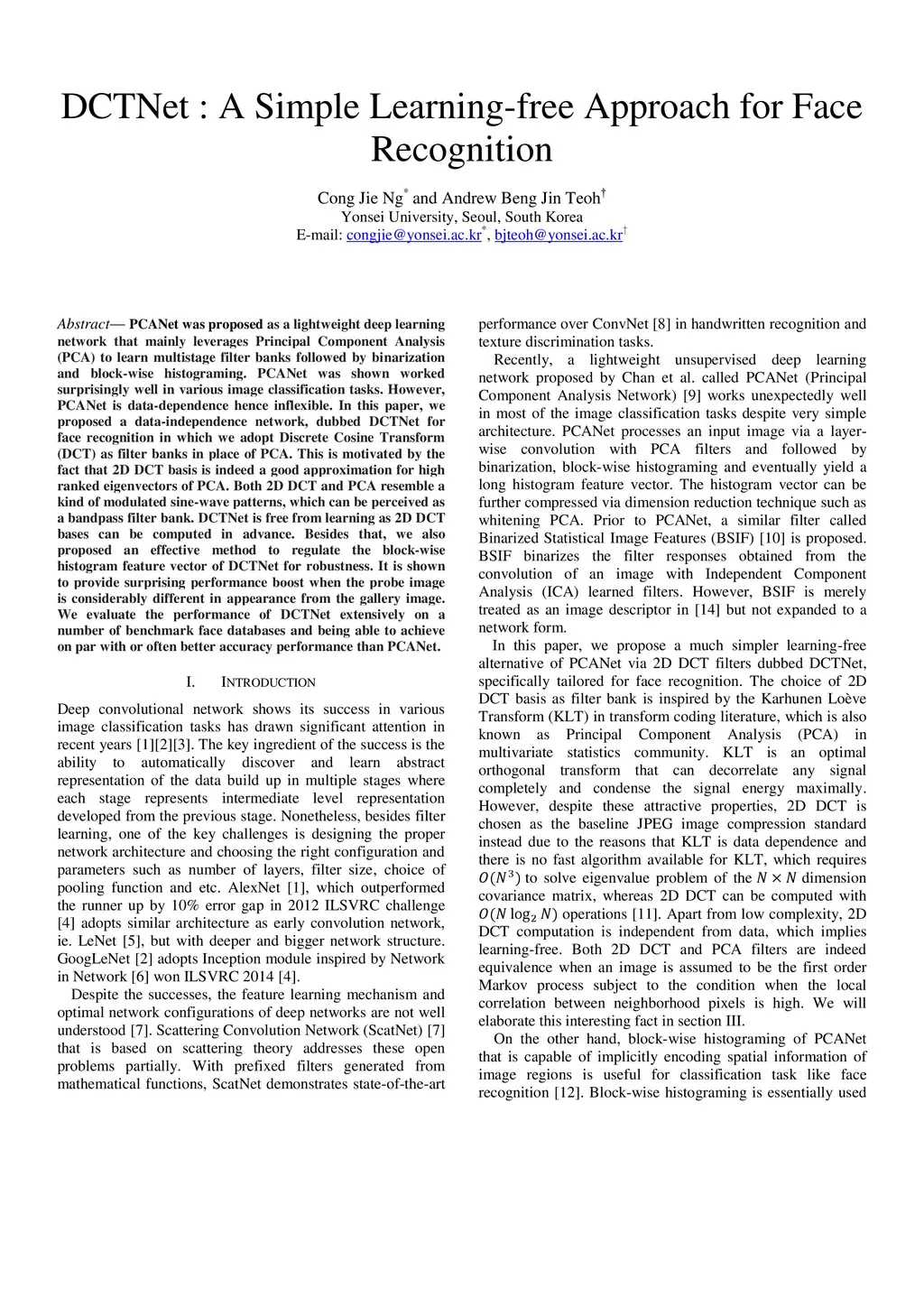DCTNet : A Simple Learning-free Approach for Face Recognition