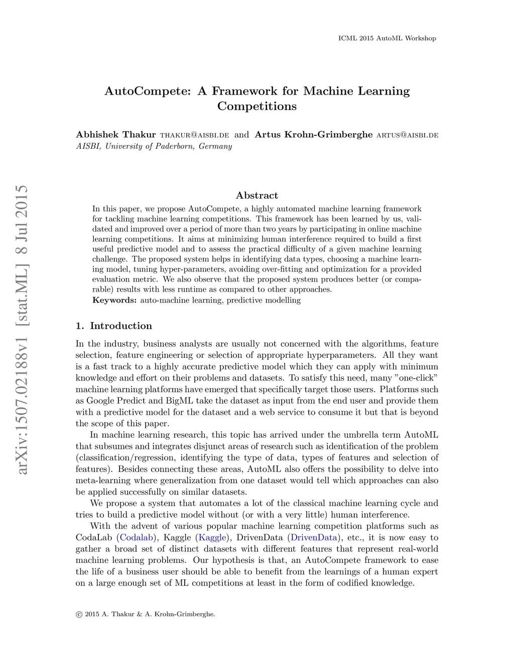 AutoCompete: A Framework for Machine Learning Competition