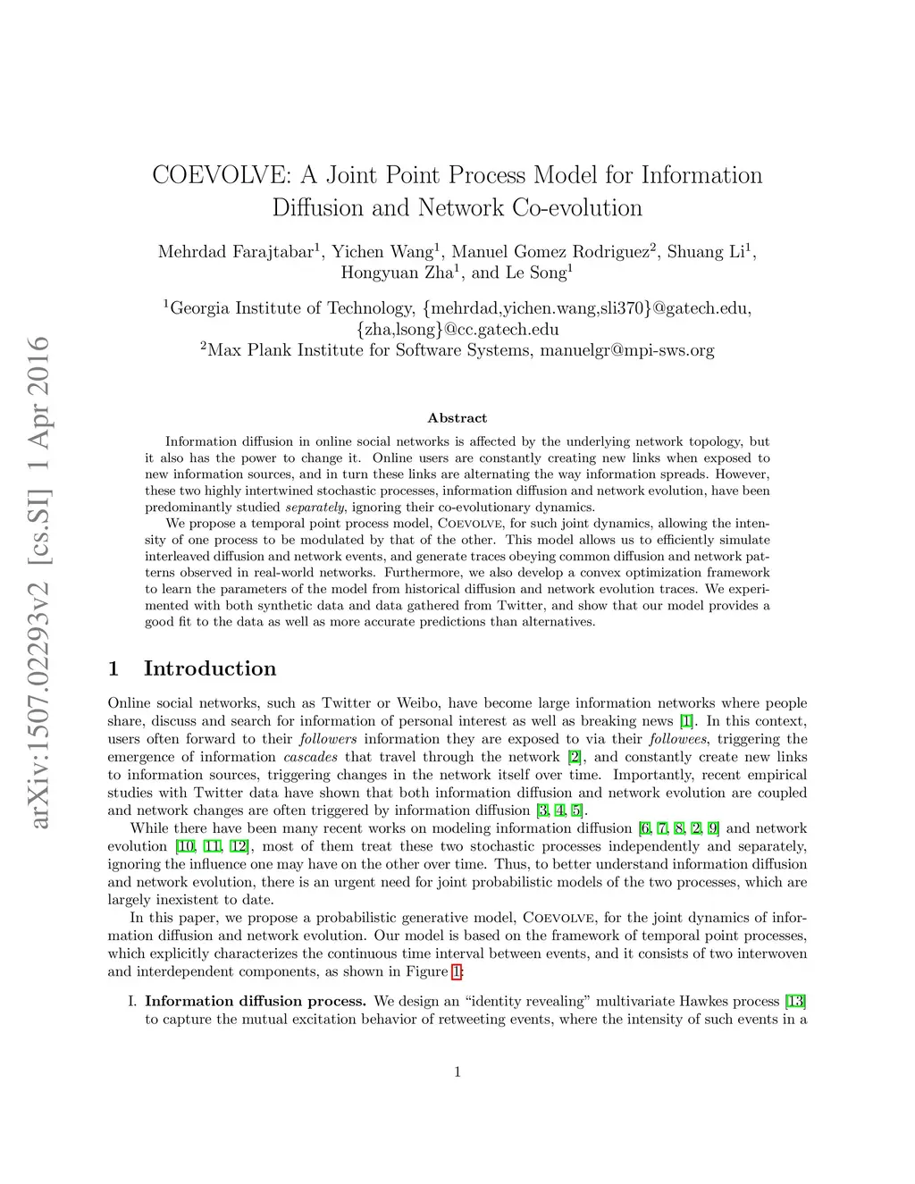 COEVOLVE: A Joint Point Process Model for Information Diffusion and