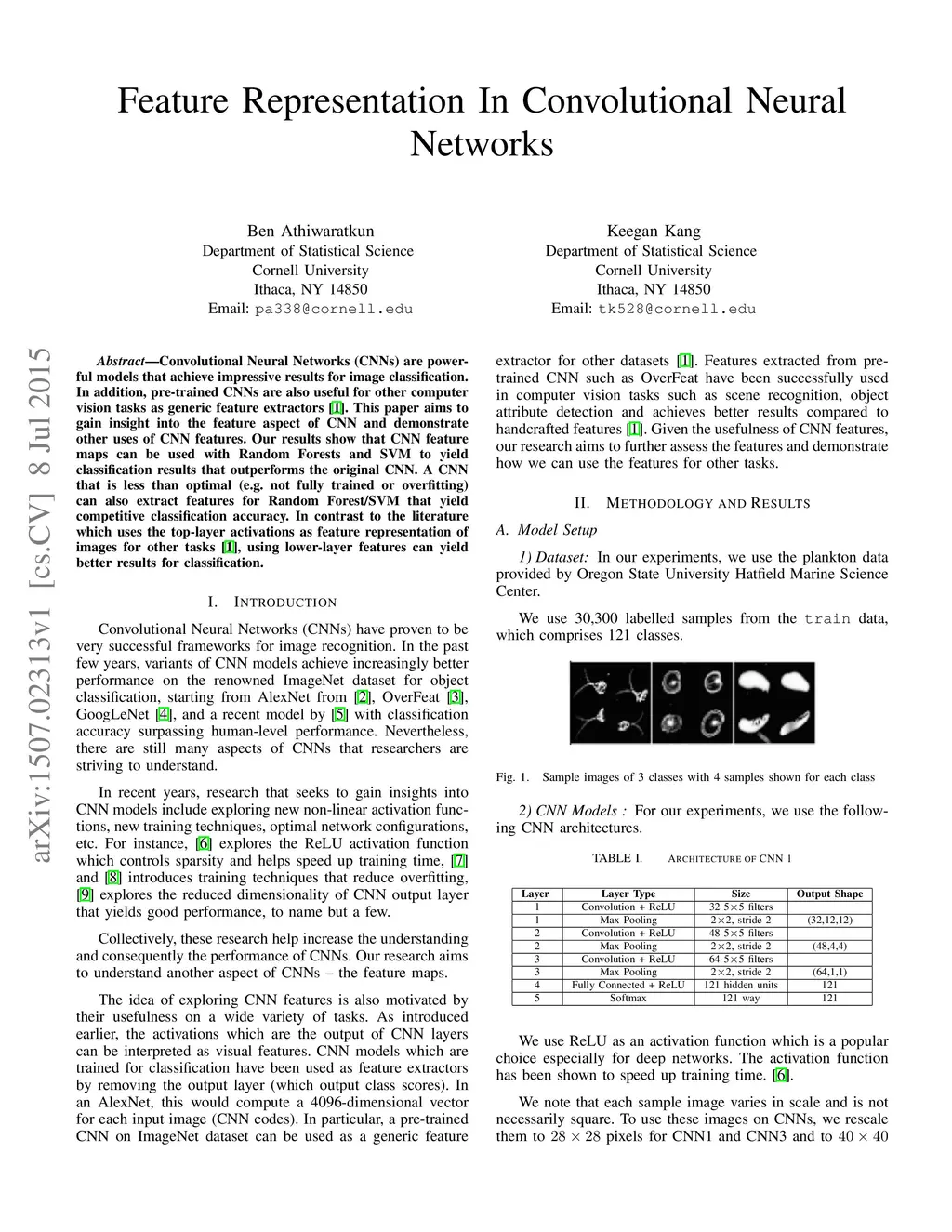 Convolutional Neural Networks (CNNs) are powerful models that achieve impressive results for image classification. In addition, pre-trained CNNs are also useful for other computer vision tasks as generic feature extractors. This paper aims to gain insight into the feature aspect of CNN and demonstrate other uses of CNN features. Our results show that CNN feature maps can be used with Random Forests and SVM to yield classification results that outperforms the original CNN. A CNN that is less than optimal (e.g. not fully trained or overfitting) can also extract features for Random Forest/SVM that yield competitive classification accuracy. In contrast to the literature which uses the top-layer activations as feature representation of images for other tasks, using lower-layer features can yield better results for classification.
