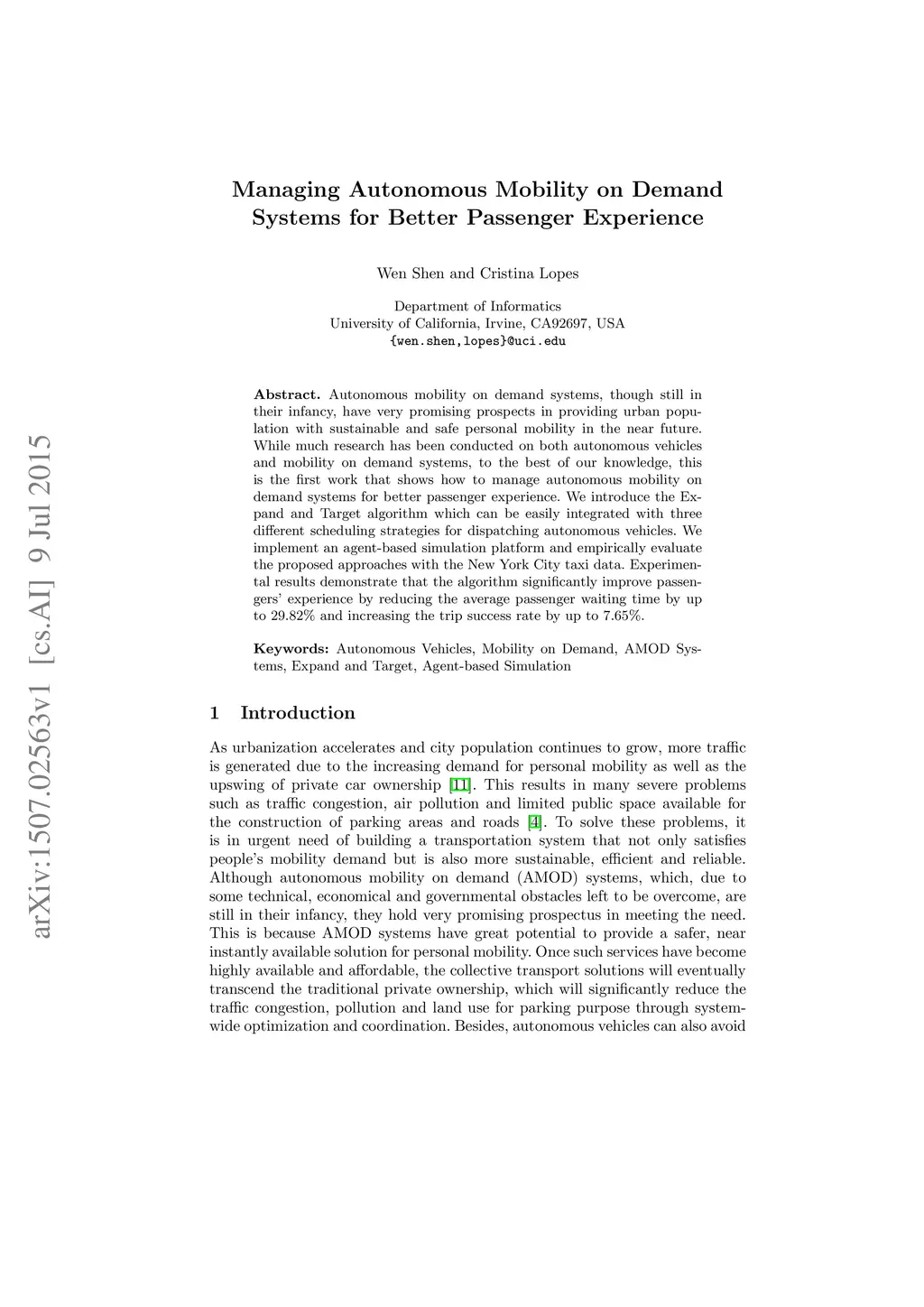 Autonomous mobility on demand systems, though still in their infancy, have very promising prospects in providing urban population with sustainable and safe personal mobility in the near future. While much research has been conducted on both autonomous vehicles and mobility on demand systems, to the best of our knowledge, this is the first work that shows how to manage autonomous mobility on demand systems for better passenger experience. We introduce the Expand and Target algorithm which can be easily integrated with three different scheduling strategies for dispatching autonomous vehicles. We implement an agent-based simulation platform and empirically evaluate the proposed approaches with the New York City taxi data. Experimental results demonstrate that the algorithm significantly improve passengers' experience by reducing the average passenger waiting time by up to 29.82% and increasing the trip success rate by up to 7.65%.
