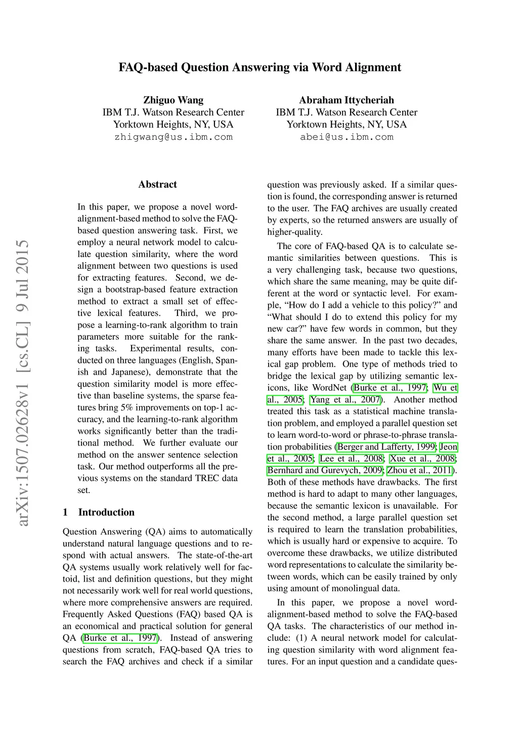 FAQ-based Question Answering via Word Alignment