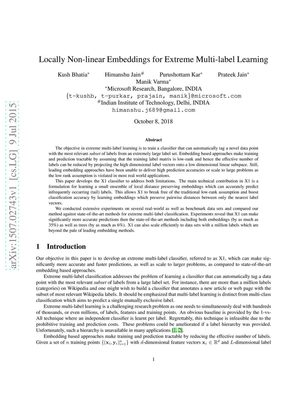Locally Non-linear Embeddings for Extreme Multi-label Learning