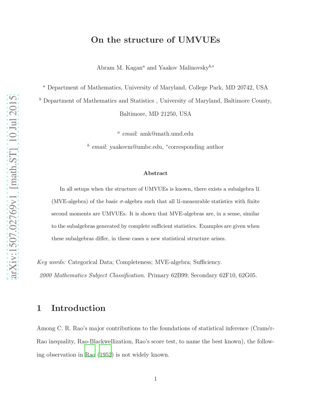 In all setups when the structure of UMVUEs is known, there exists a subalgebra (MVE-algebra) of the basic -algebra such that all -measurable statistics with finite second moments are UMVUEs. It is shown that MVE-algebras are, in a sense, similar to the subalgebras generated by complete sufficient statistics. Examples are given when these subalgebras differ, in these cases a new statistical structure arises.