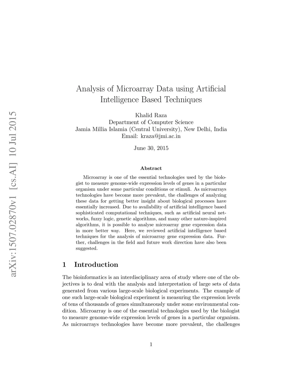Microarray is one of the essential technologies used by the biologist to measure genome-wide expression levels of genes in a particular organism under some particular conditions or stimuli. As microarrays technologies have become more prevalent, the challenges of analyzing these data for getting better insight about biological processes have essentially increased. Due to availability of artificial intelligence based sophisticated computational techniques, such as artificial neural networks, fuzzy logic, genetic algorithms, and many other nature-inspired algorithms, it is possible to analyse microarray gene expression data in more better way. Here, we reviewed artificial intelligence based techniques for the analysis of microarray gene expression data. Further, challenges in the field and future work direction have also been suggested.
