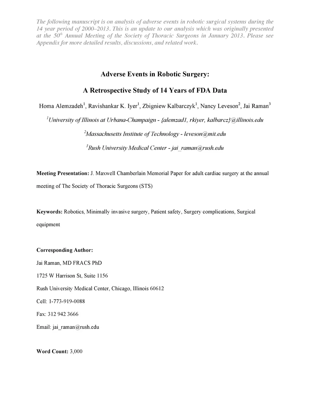 Adverse Events in Robotic Surgery: A Retrospective Study of 14 Years of