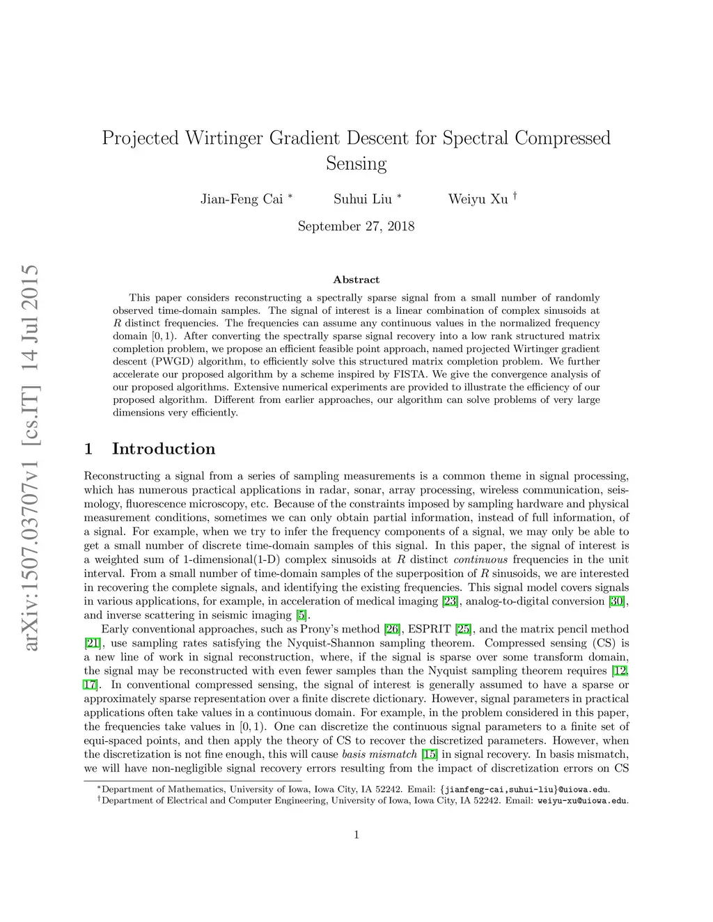 This paper considers reconstructing a spectrally sparse signal from a small number of randomly observed time-domain samples. The signal of interest is a linear combination of complex sinusoids at distinct frequencies. The frequencies can assume any continuous values in the normalized frequency domain . After converting the spectrally sparse signal recovery into a low rank structured matrix completion problem, we propose an efficient feasible point approach, named projected Wirtinger gradient descent (PWGD) algorithm, to efficiently solve this structured matrix completion problem. We further accelerate our proposed algorithm by a scheme inspired by FISTA. We give the convergence analysis of our proposed algorithms. Extensive numerical experiments are provided to illustrate the efficiency of our proposed algorithm. Different from earlier approaches, our algorithm can solve problems of very large dimensions very efficiently.