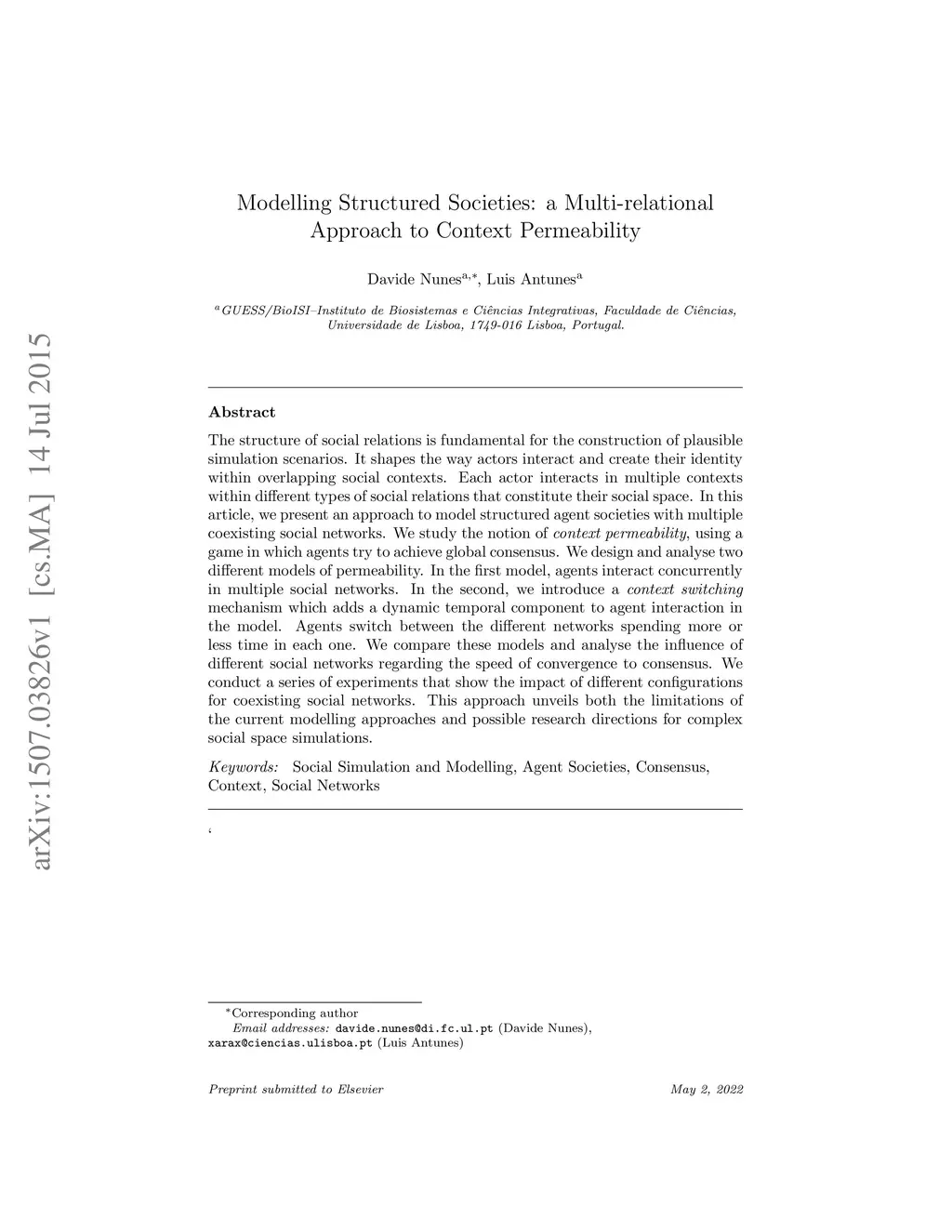The structure of social relations is fundamental for the construction of plausible simulation scenarios. It shapes the way actors interact and create their identity within overlapping social contexts. Each actor interacts in multiple contexts within different types of social relations that constitute their social space. In this article, we present an approach to model structured agent societies with multiple coexisting social networks. We study the notion of context permeability, using a game in which agents try to achieve global consensus. We design and analyse two different models of permeability. In the first model, agents interact concurrently in multiple social networks. In the second, we introduce a context switching mechanism which adds a dynamic temporal component to agent interaction in the model. Agents switch between the different networks spending more or less time in each one. We compare these models and analyse the influence of different social networks regarding the speed of convergence to consensus. We conduct a series of experiments that show the impact of different configurations for coexisting social networks. This approach unveils both the limitations of the current modelling approaches and possible research directions for complex social space simulations.