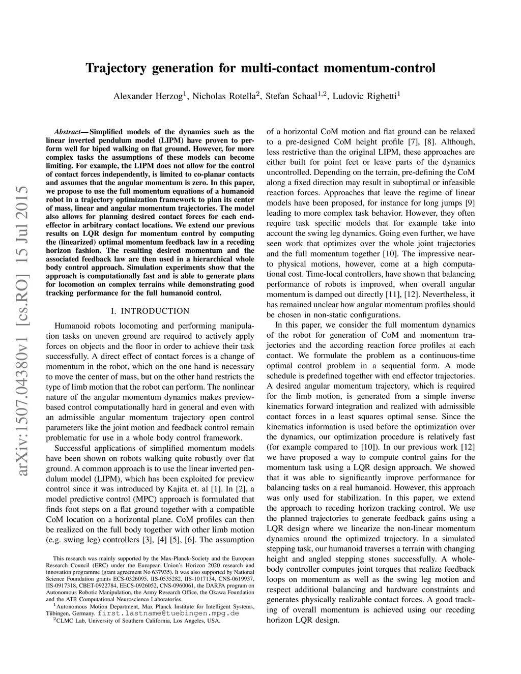 Trajectory generation for multi-contact momentum-control