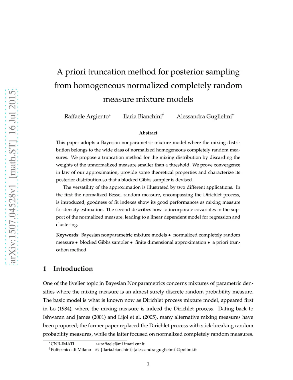 normalized completely random measure mixture models