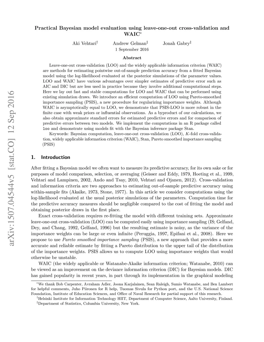 Practical Bayesian model evaluation using leave-one-out cross-validation