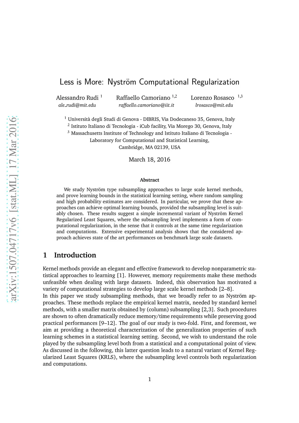 We study Nystr\"om type subsampling approaches to large scale kernel methods, and prove learning bounds in the statistical learning setting, where random sampling and high probability estimates are considered. In particular, we prove that these approaches can achieve optimal learning bounds, provided the subsampling level is suitably chosen. These results suggest a simple incremental variant of Nystr\"om Kernel Regularized Least Squares, where the subsampling level implements a form of computational regularization, in the sense that it controls at the same time regularization and computations. Extensive experimental analysis shows that the considered approach achieves state of the art performances on benchmark large scale datasets.