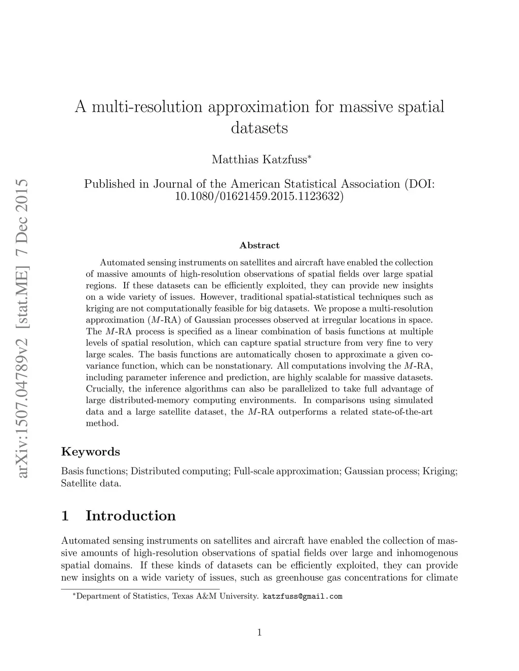 A multi-resolution approximation for massive spatial datasets