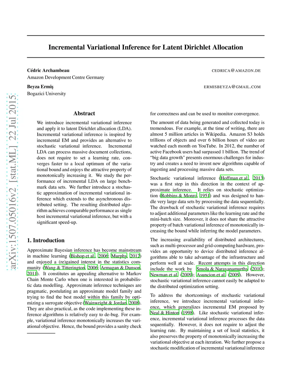 Incremental Variational Inference for Latent Dirichlet Allocation