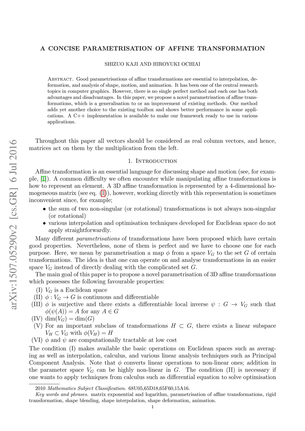 A concise parametrisation of affine transformation