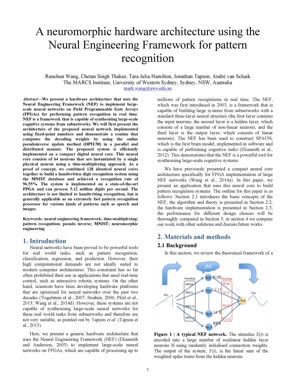 A neuromorphic hardware architecture using the Neural Engineering