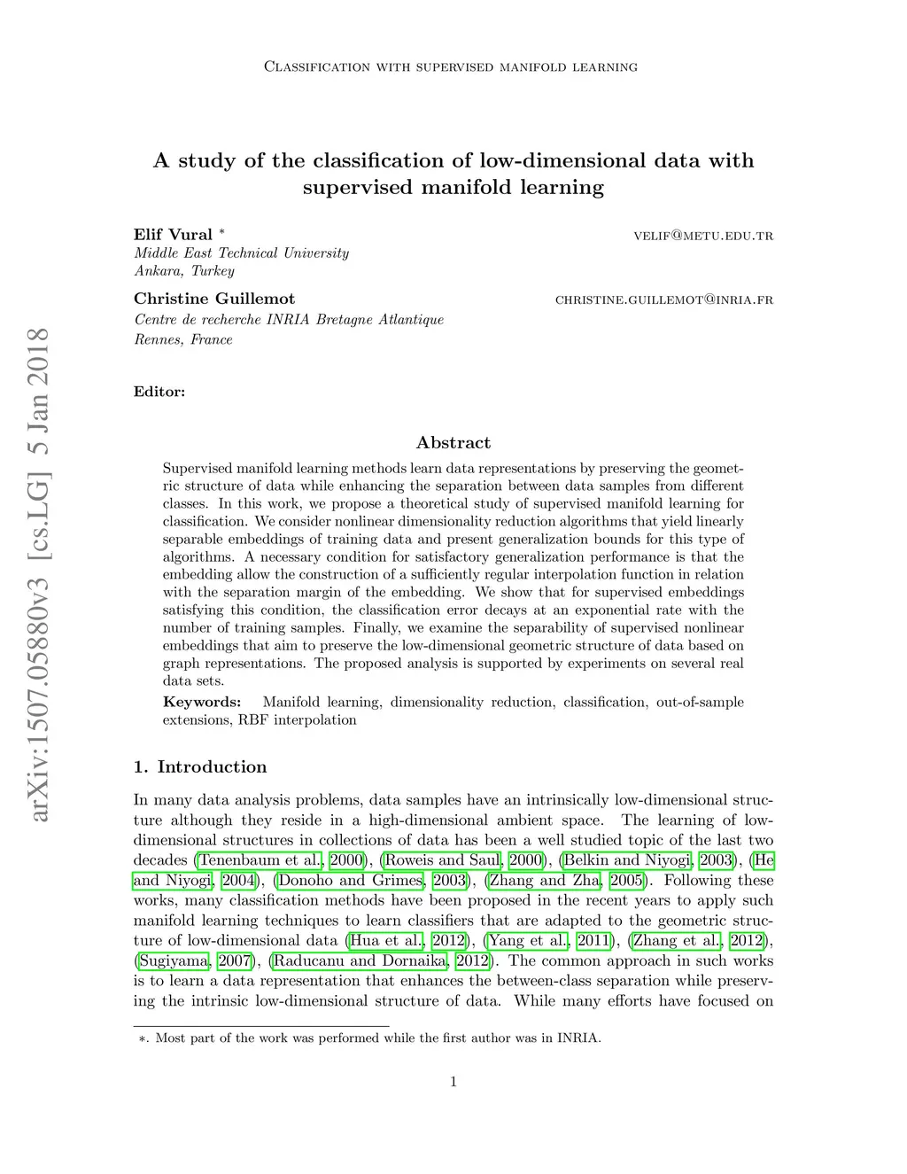 A study of the classification of low-dimensional data with supervised