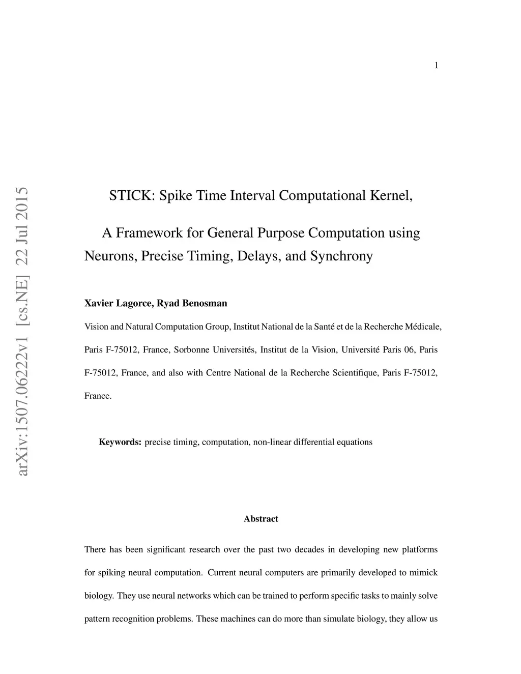 STICK: Spike Time Interval Computational Kernel, A Framework for General