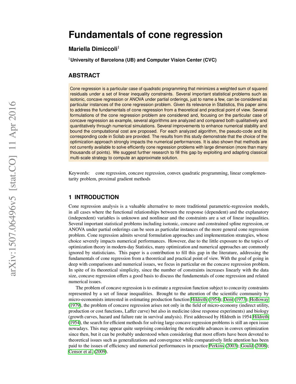 Fundamentals of cone regression