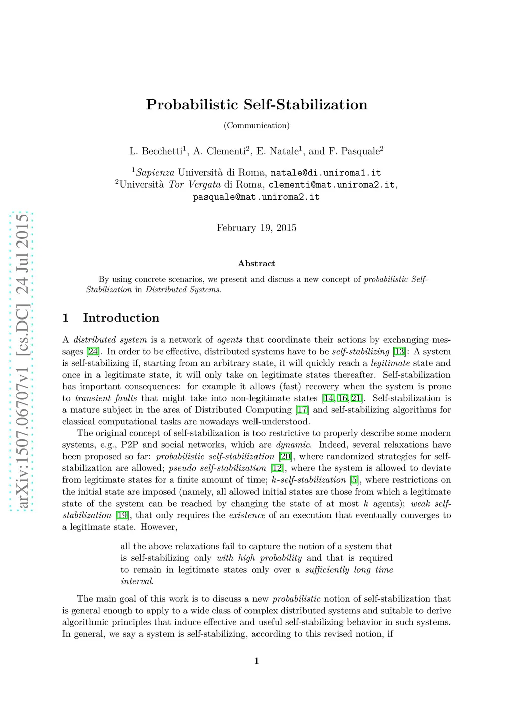 Probabilistic Self-Stabilization