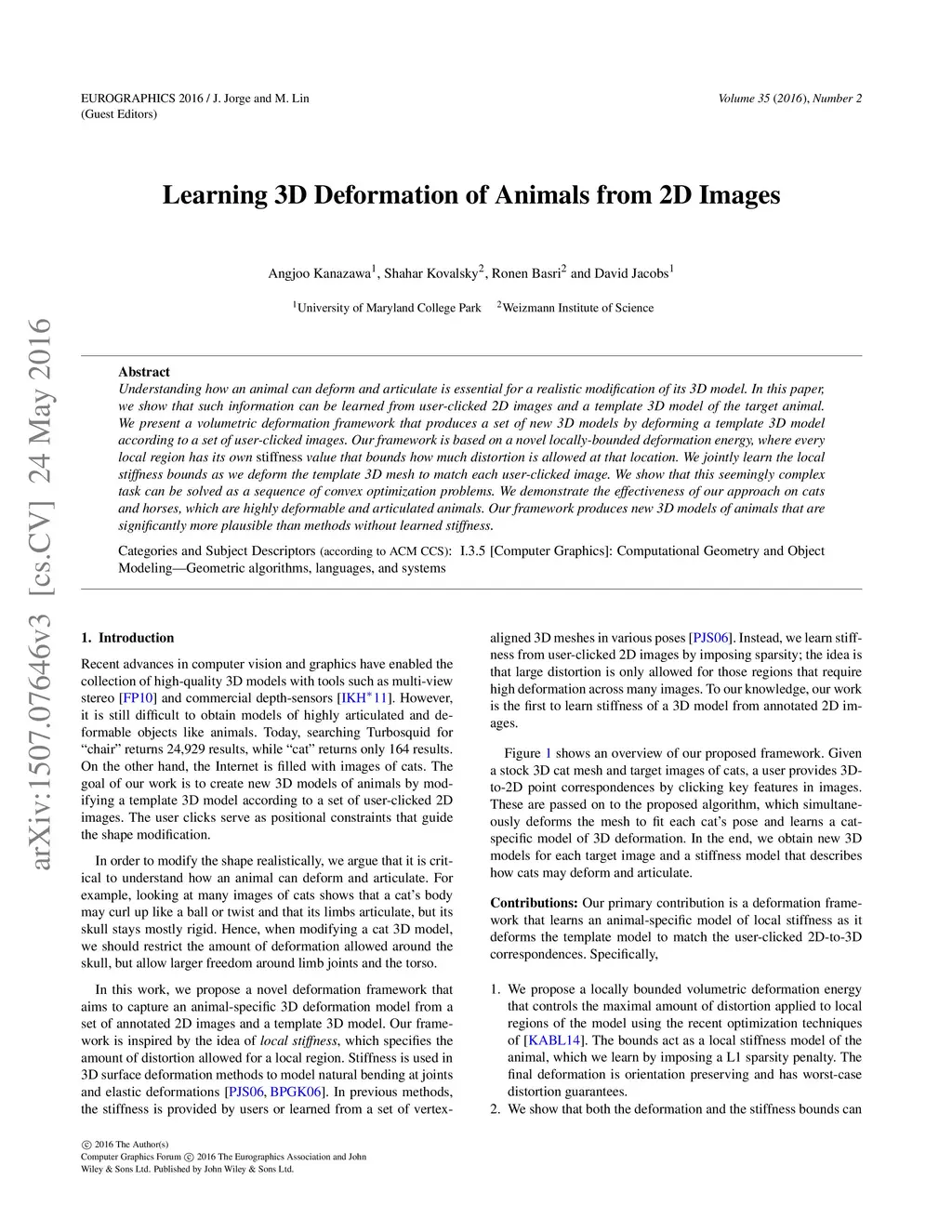 Understanding how an animal can deform and articulate is essential for a realistic modification of its 3D model. In this paper, we show that such information can be learned from user-clicked 2D images and a template 3D model of the target animal. We present a volumetric deformation framework that produces a set of new 3D models by deforming a template 3D model according to a set of user-clicked images. Our framework is based on a novel locally-bounded deformation energy, where every local region has its own stiffness value that bounds how much distortion is allowed at that location. We jointly learn the local stiffness bounds as we deform the template 3D mesh to match each user-clicked image. We show that this seemingly complex task can be solved as a sequence of convex optimization problems. We demonstrate the effectiveness of our approach on cats and horses, which are highly deformable and articulated animals. Our framework produces new 3D models of animals that are significantly more plausible than methods without learned stiffness.